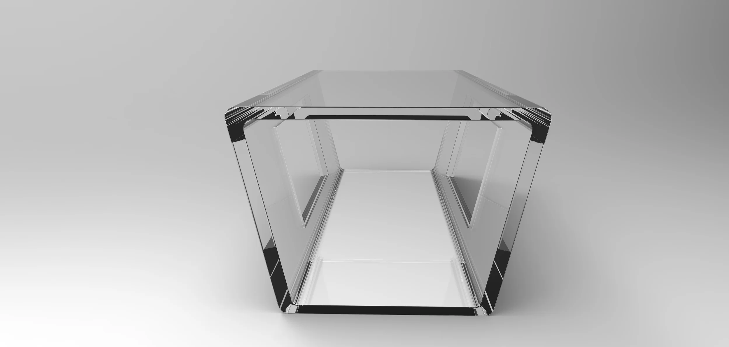 The extrusion table is an acrylic coffee table which in theory is produced by a giant extrusion machine to create a perfect seamless shape. Access holes on the sides, front, and back mean storage within the table is easy while the clear acrylic means that you can see everything within the table.